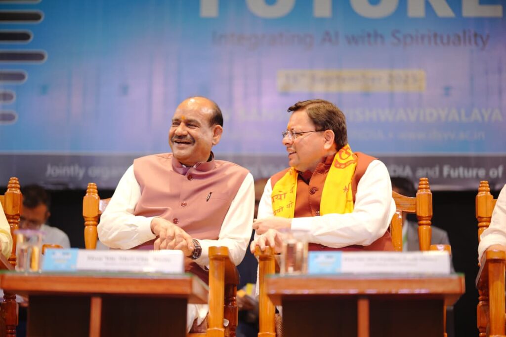 हरिद्वार: लोकसभा अध्यक्ष ओम बिरला एवं मुख्यमंत्री पुष्कर सिंह धामी ने देवसंस्कृति विश्वविद्यालय हरिद्वार द्वारा आयोजित इण्डियन एआई समिट में हिस्सा लिया। कार्यक्रम का शुभारम्भ लोकसभा अध्यक्ष ओम बिरला, मुख्यमंत्री पुष्कर सिंह धामी ने दीप प्रज्ज्वलन कर किया।