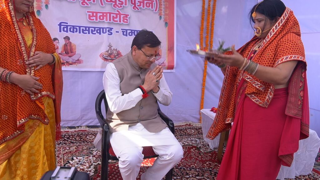 चंपावत: मुख्यमंत्री पुष्कर सिंह धामी ने चंपावत भ्रमण के दौरान बनबसा और टनकपुर क्षेत्र में स्थानीय महिलाओं द्वारा आयोजित भैया दूज (च्यूड़ा पूजन) समारोह में भाग लिया। इस मौके पर कुमाऊं की परंपरा का प्रदर्शन कर महिलाओं ने पारंपरिक रूप से कुमाऊं का प्रसिद्ध ‘च्यूड़ा पूजन’ अनुष्ठान किया। इस अनुष्ठान के माध्यम से, महिलाओं ने मुख्यमंत्री की लंबी आयु, स्वस्थ जीवन और दीर्घायु की कामना की।