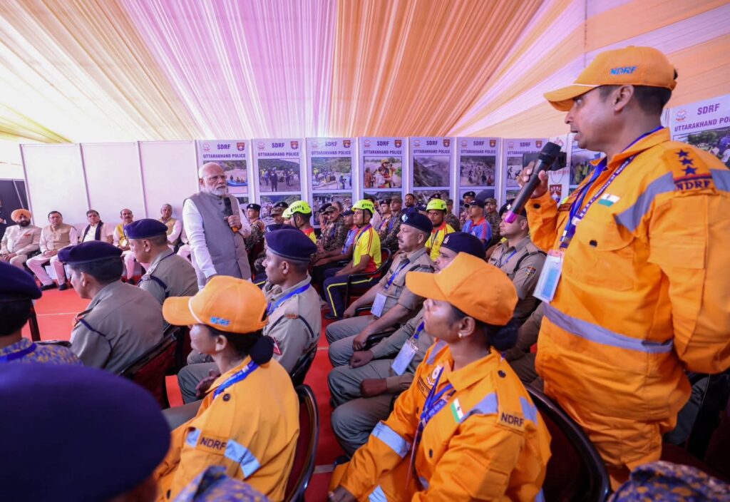 देहरादून: प्रधानमंत्री नरेंद्र मोदी ने उत्तराखंड दौरे के दौरान देहरादून में NDRF, SDRF, Uttarakhand Police की टीम एवं आपदा मित्र स्वयंसेवकों के साथ संवाद किया। इस दौरान पीएम मोदी ने प्रदेश में आपदा प्रभावित क्षेत्रों में किए गए उत्कृष्ट कार्यों की सराहना की और उनके अनुभवों को सुना।
